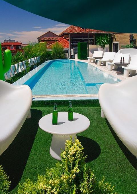 Room Mate Oscar: Su piscina no es demasiado grande, de hecho solo hay sitio para 35 personas. Sin embargo, nos parece que merece mucho la pena ascender a las alturas de este hotel para disfrutar de las vistas, tumbarse a la bartola en sus camas balinesas y saborear un Vermut Zarro.