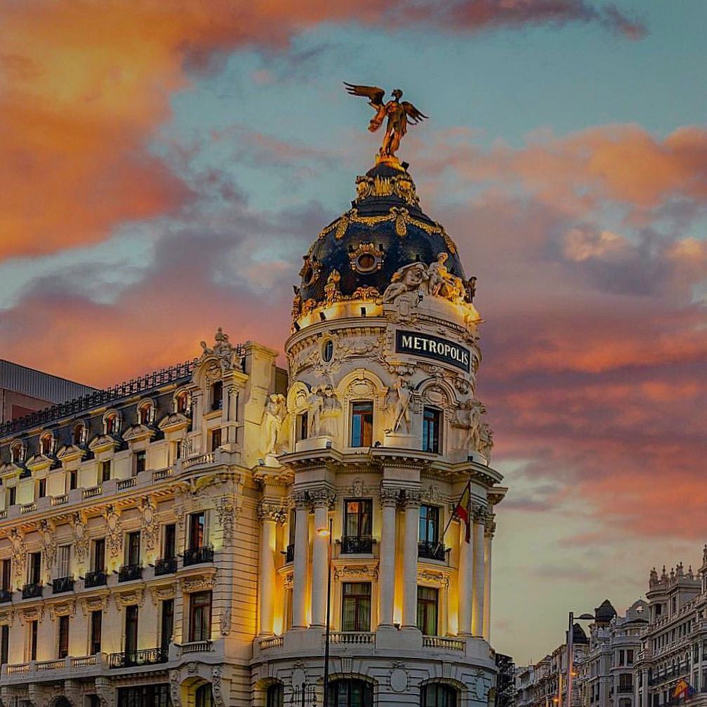 Dicen que “de Madrid al cielo” y es que el cielo de Madrid tienen algo especial, es claro, luminoso y tiene un color único. Y por si esto fuera poco, cuando se alza la mirada para disfrutarlo nos regala momentos mágicos de puro arte…desde lo más alto, majestuosas escultura coronan algunos de los edificios más emblemáticos de la capital dejando hipnotizado al que las contempla.