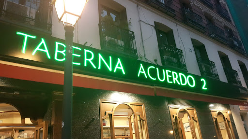 La Taberna Acuerdo 2 se destaca por su ambiente acogedor y auténtico. Con su decoración tradicional y un servicio cercano, esta taberna se ha convertido en un punto de referencia para aquellos que buscan un ambiente de barrio con historia y sabor. Es el lugar ideal para disfrutar de una comida o una bebida en un entorno que refleja la esencia de Madrid.